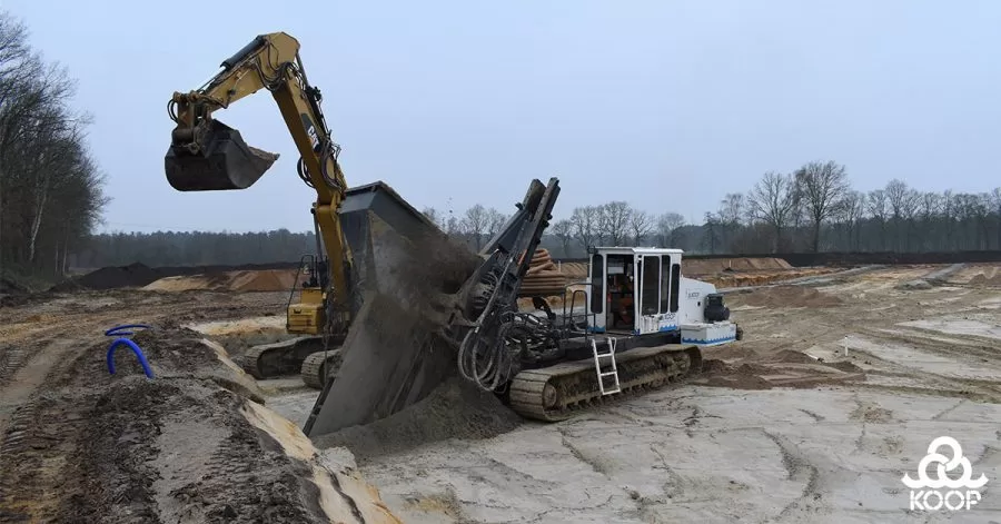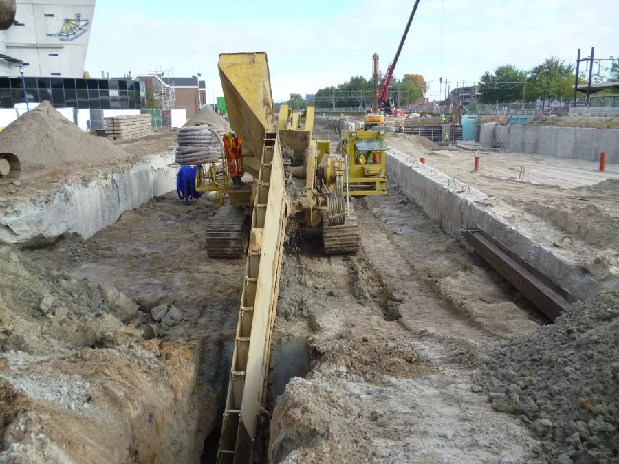 7,8 meter onder het maaiveld geïnstalleerd. Om de grondwatertoestroming in slecht doorlatende gronden te bevorderen wordt de drainsleuf aangevuld met drainagezand.