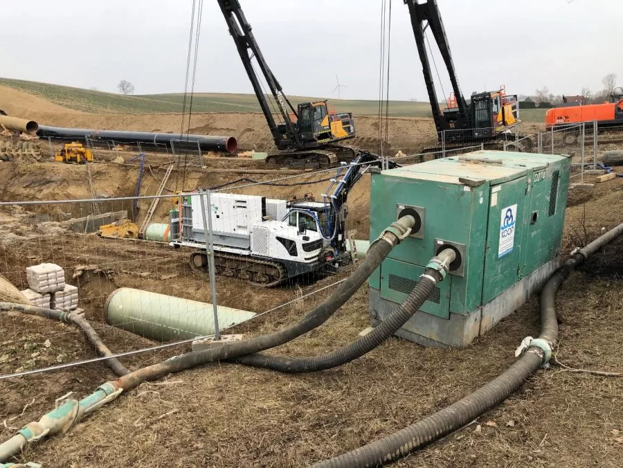 De eerste 140 km wordt door ons, Koop Bronbemaling, uitgevoerd. Ons team is met ongeveer 50 medewerkers actief op de bouwplaats. Er worden putten geboord, … filters geïnstalleerd en alle noodzakelijke waterretentiecomponenten aangelegd en onderhouden.